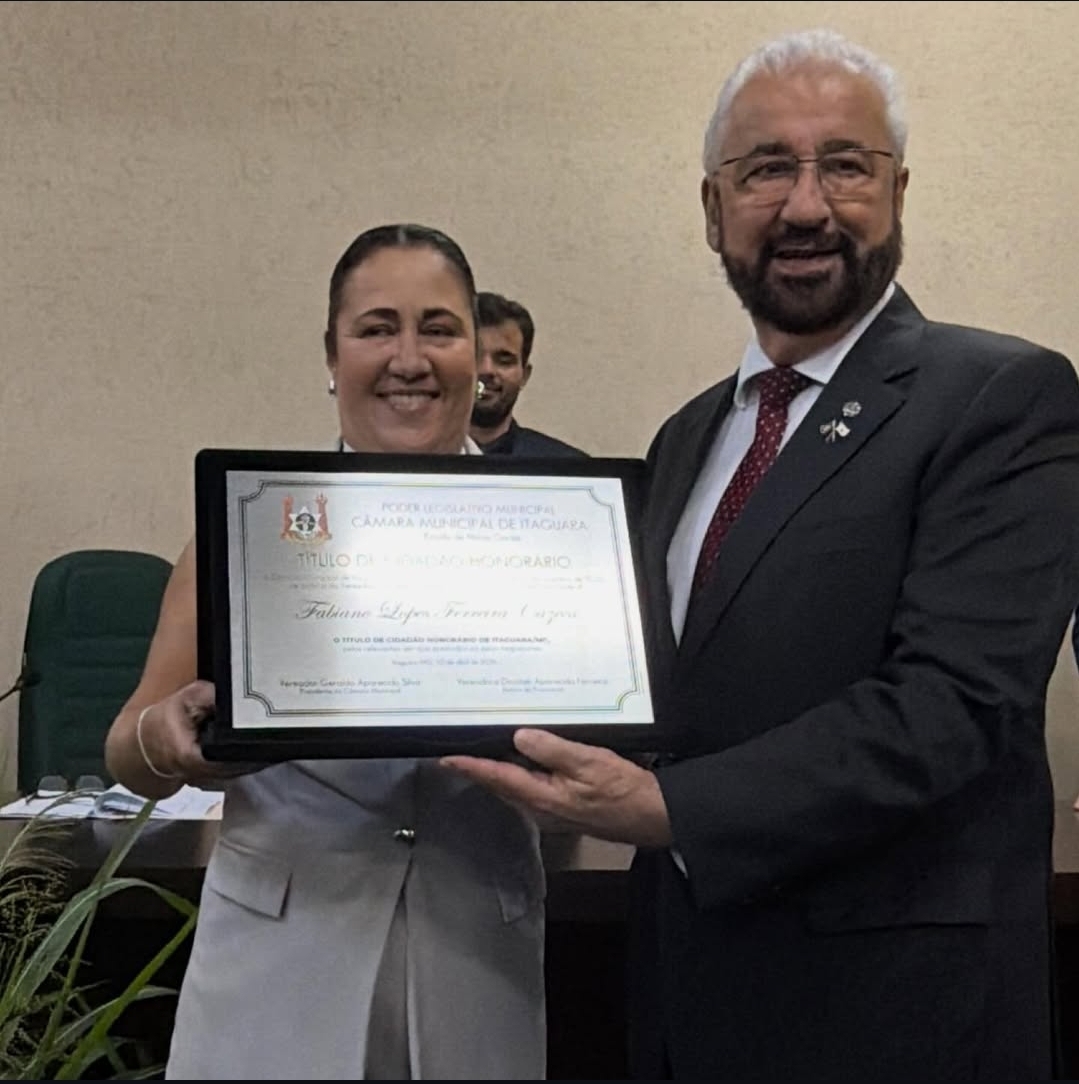 A cidade de Itaguara, em Minas Gerais, ganhou oficialmente um novo filho ilustre. Em uma cerimônia marcada pela emoção e pelo reconhecimento público, o deputado federal e empresário Fabiano Cazeca foi agraciado com o título de Cidadão Honorário, consolidando sua forte ligação com o município.
